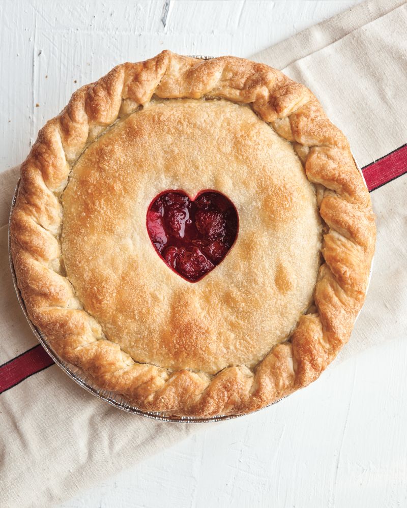 6. Use heart cookie cutter to cut out a heart from the center of the additional unbaked pie crust